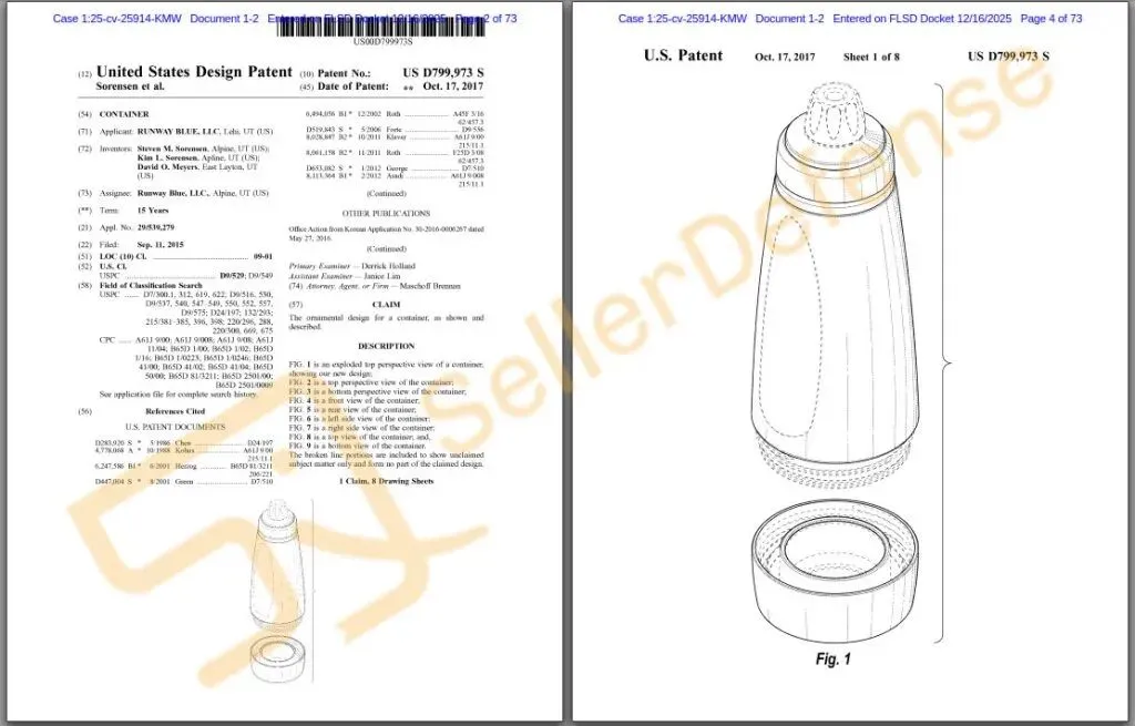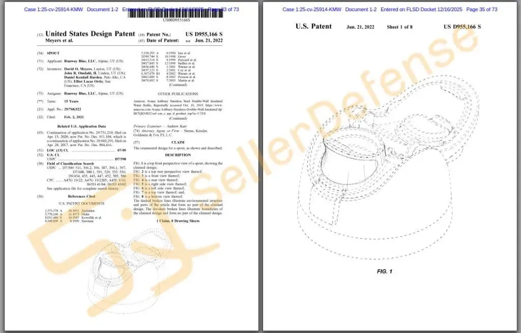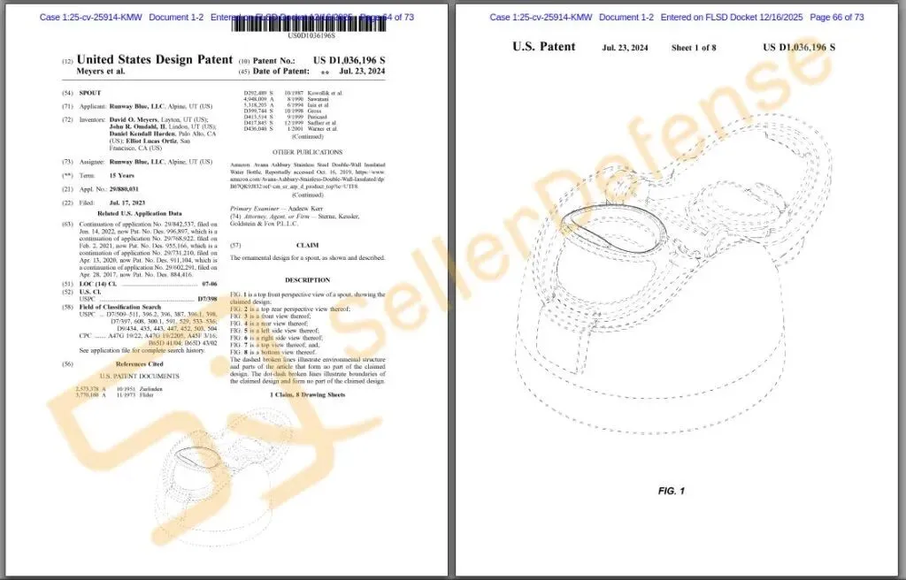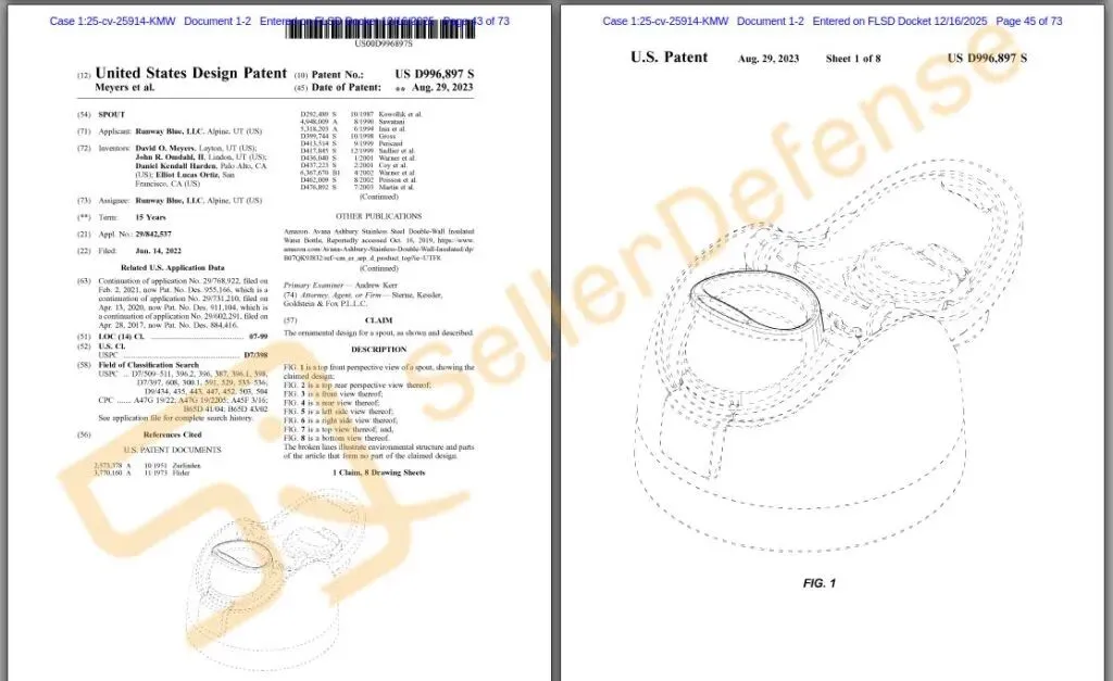 原告开发,设计、制造和销售包括可重复使用饮具、特制水瓶、摇摇杯和厨房小工具在内的产品,这些产品均采用 TROVE BRANDS 品牌商标或专利。相关商标和专利如下,各位卖家注意排查避雷!