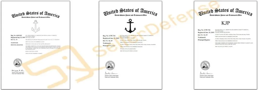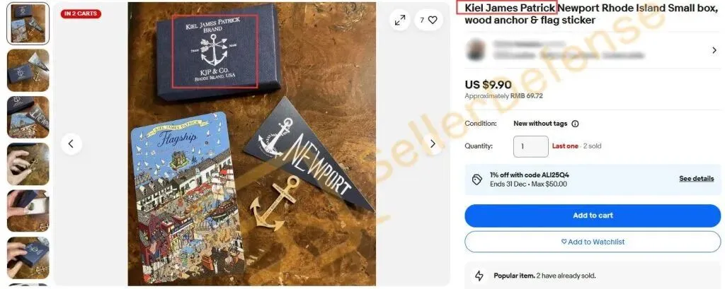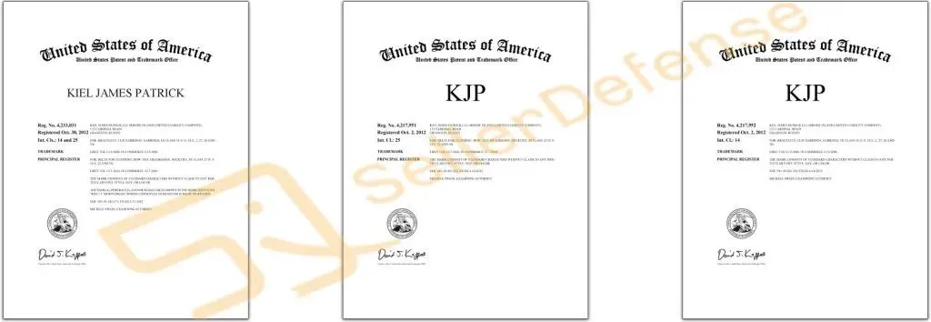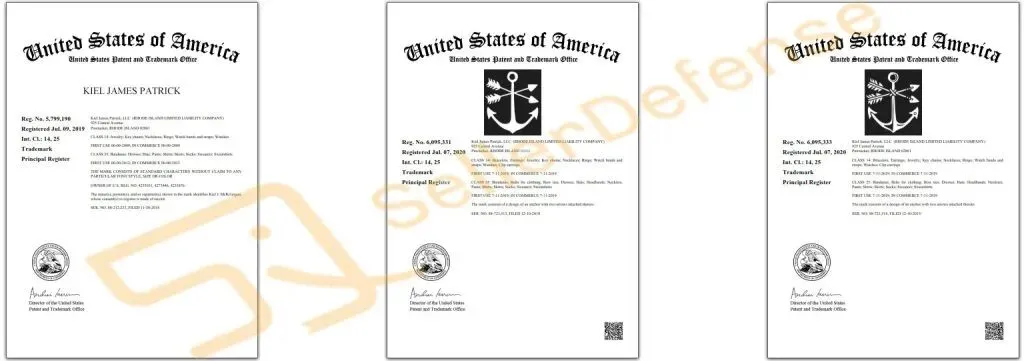 原告 Kiel James Patrick, LLC 是一家罗德岛州有限责任公司,KJP 设计、创作、生产和销售原创时尚产品,包括但不限于服装、珠宝和宠物配饰。其产品灵感源自新英格兰独特的生活方式,着重展现航海生活方式、追求“美国梦”以及新英格兰四季更迭的美学等主题。