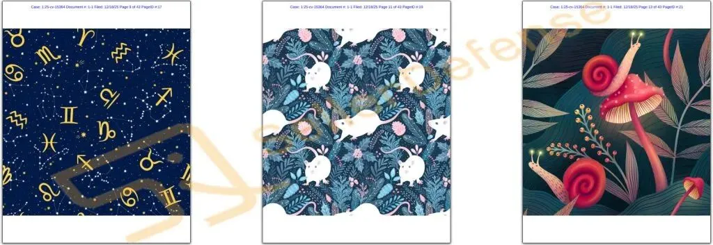 原告 Iuliia Gosteva 是一位插画家,专长于创作无缝图案。原告一直为来自世界各地的众多客户设计独特的图案,其作品灵感多源于植物、花卉和动物。