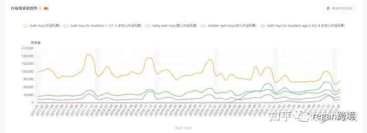 可以看到,浴室玩具市场是趋于平稳的发展,这样的可以作为我们考量的一个市场。