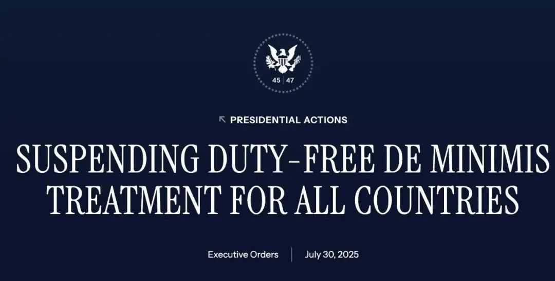 美国白宫近日宣布,自2025年8月29日起,将全面暂停“最低限度豁免”政策。