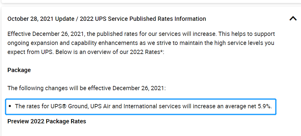 UPS作为全球领先的物流企业,也是很多跨境企业物流服务方合作之一,今年UPS的运费上涨同FedEx一样,控制在5.9%左右。
