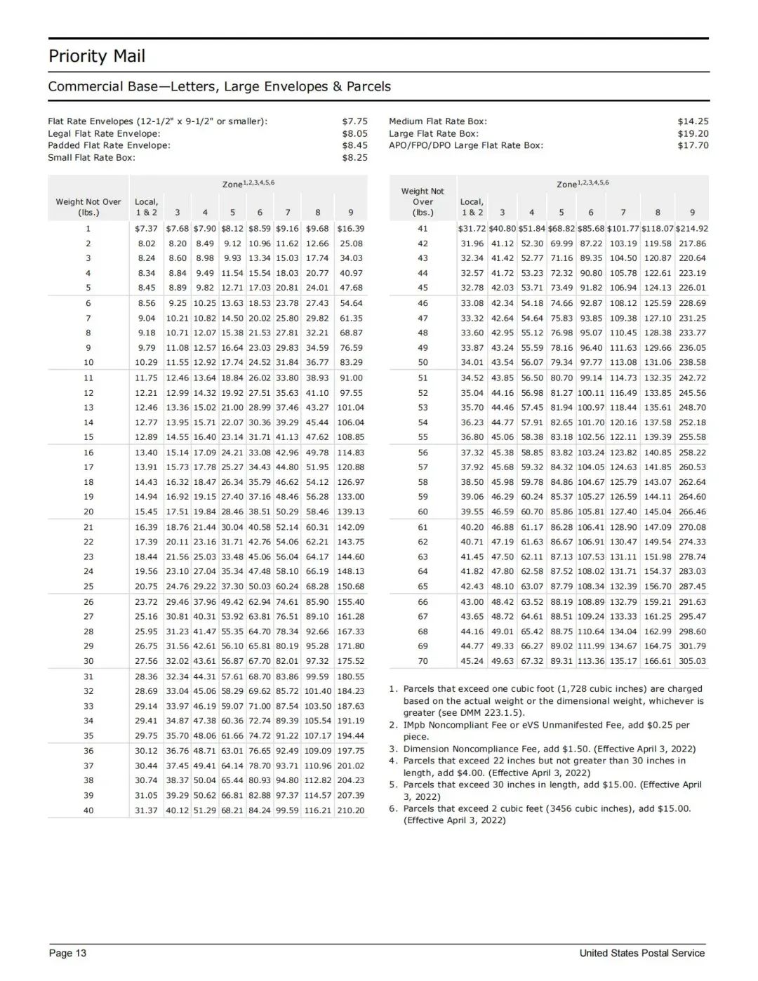 下图为USPS常用线路的价格明细,同时也可以通过小马整理的下载链接进行下载哦!