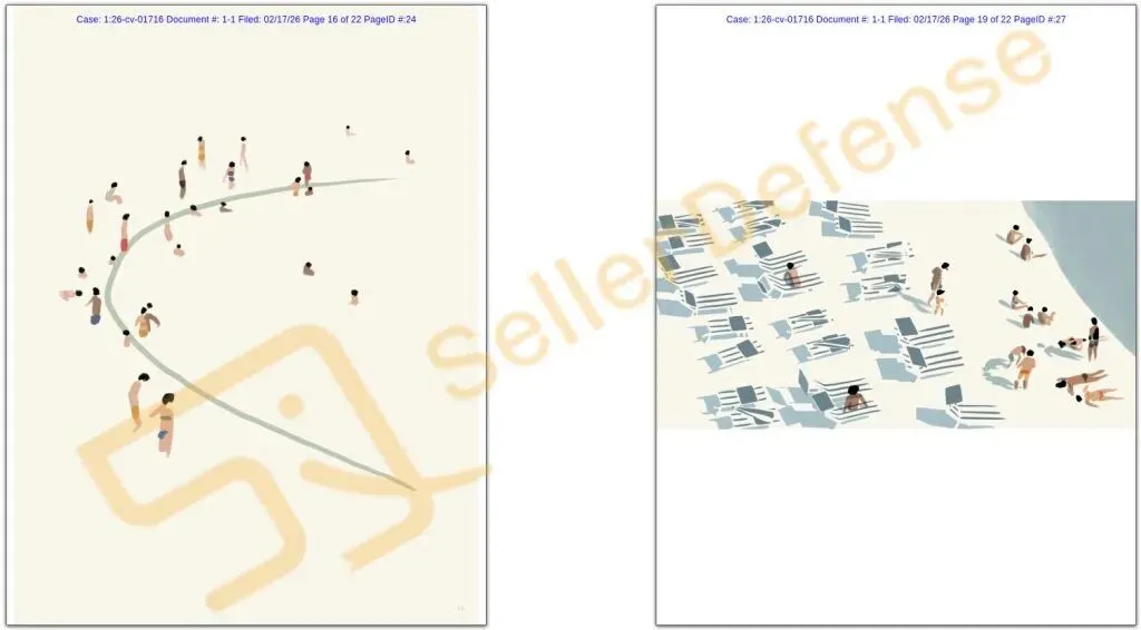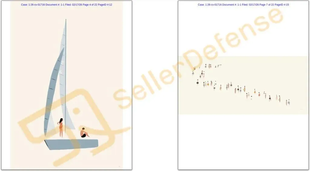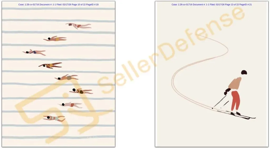 原告 Kristen Marie Boydstun 是一位艺术家和插画家,其作品以简洁的造型、大量留白、有限的色彩以及温暖的夏日氛围为特征。