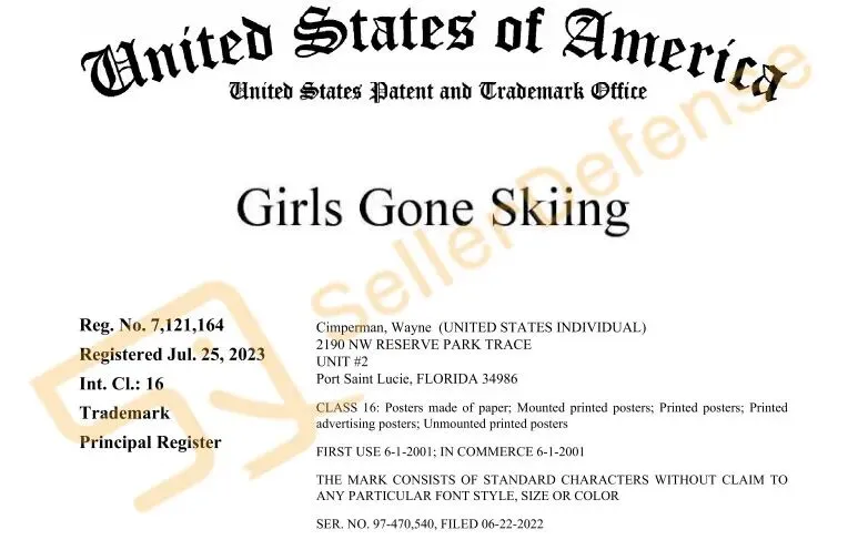 原告 Wayne Cimperman 从事 Girls Gone Skiing 品牌产品的开发、营销和销售业务,销售与 Girls Gone Skiing 商标相关的印刷品、海报和产品已有二十余年。Girls Gone Skiing 商标主要用于推广体现滑雪怀旧情怀的产品。