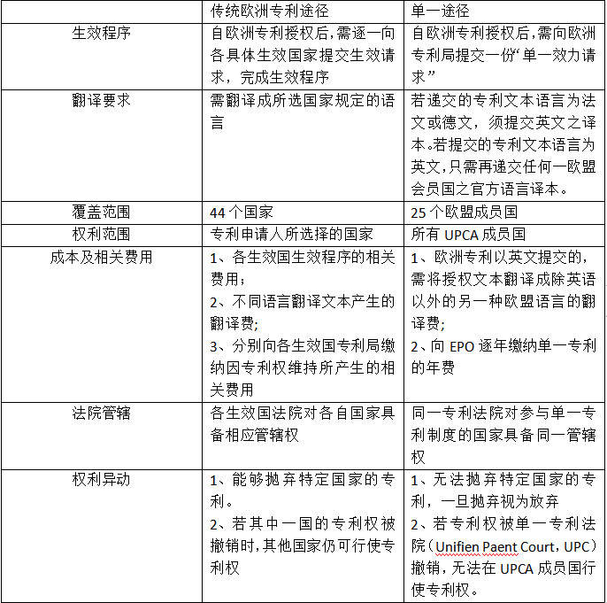 欧洲单一专利是一种“具有统一效力的欧洲专利”,也被称为具备单一效力的欧洲专利。在欧洲专利局(European Patent Office,EPO)根据《欧洲专利公约》(European Patent Convention,EPC)的规则和程序授予欧洲专利(European patent,EP)后,专利权人可以在欧洲专利授权公告后的一个月内向EPO提交“单一效力请求”的申请,而无需像传统欧洲专利分别到各个国家登记,也无需分别缴纳相应费用,该专利就可以在单一专利体系的全部参与国生效,获得统一保护。