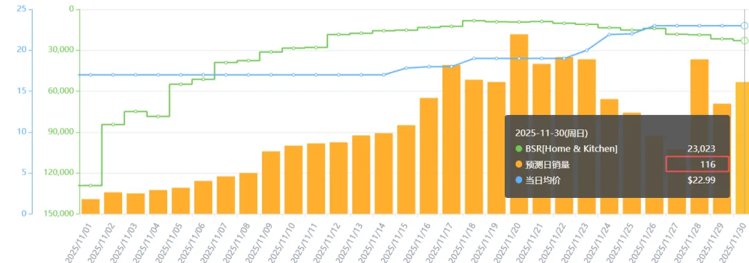 2.定义你的目标,对标你的核心竞品,或设定一个你希望通过推广达到的合理目标排名,通过卖家精灵反查销量。