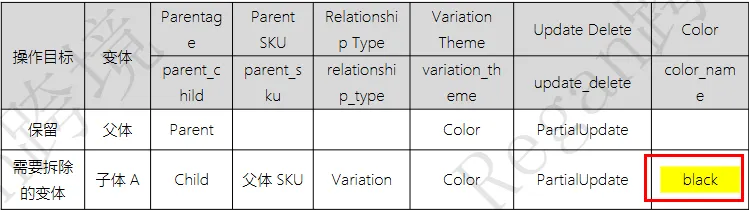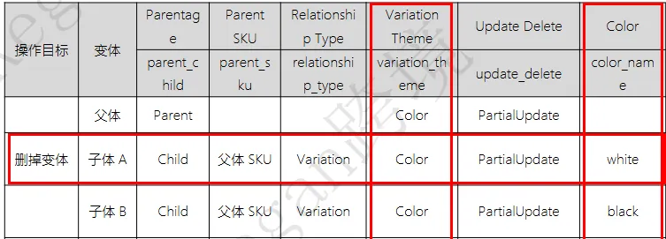 ②修改变体属性:找到Variation Theme(变体主题)对应的属性列,比如如果是颜色变体,就找到Color这一列。