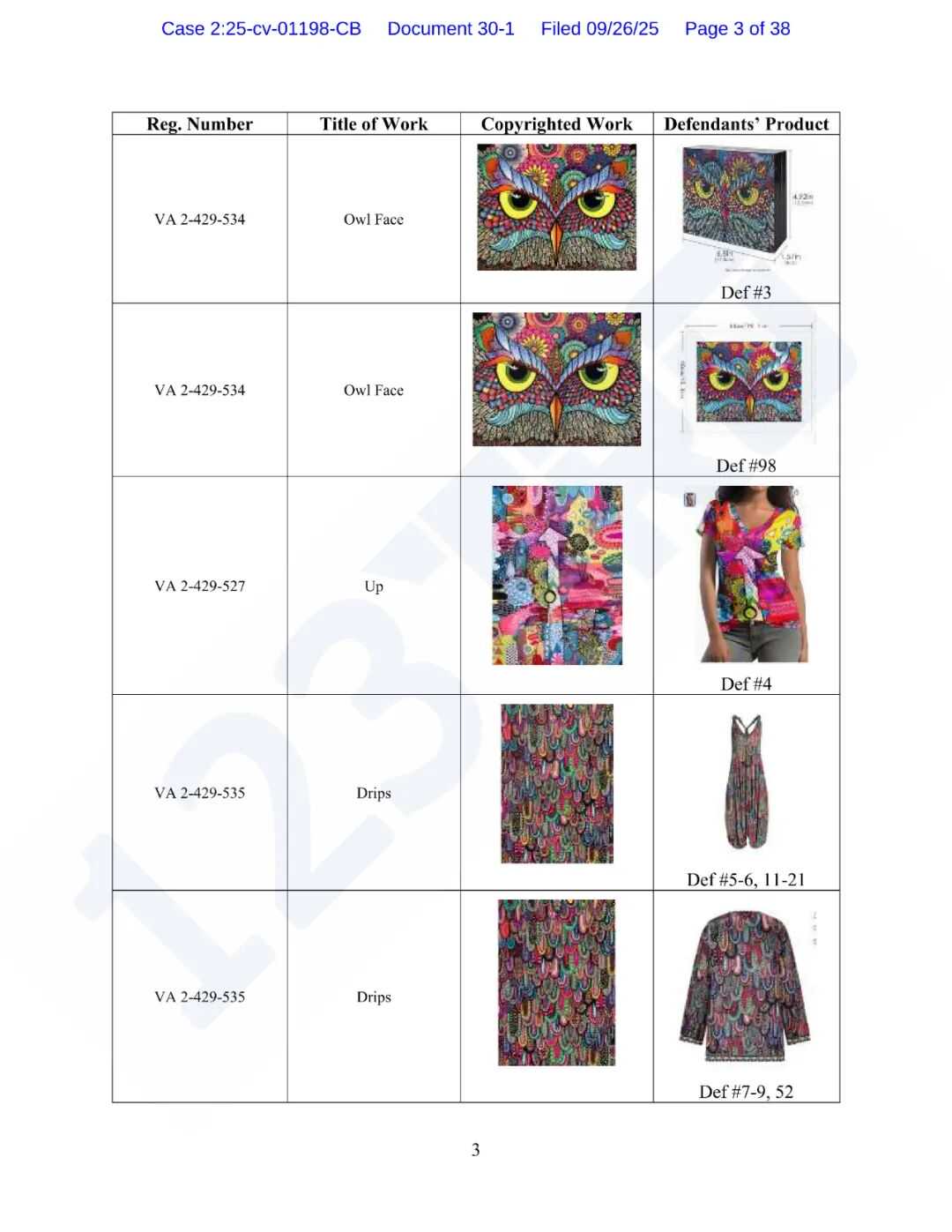25-cv-01841,Aleksandra Misic森林蜗牛插画维权,警惕连环TRO风险!本案依旧是keith律所联合ference律所在宾夕法尼亚州发起的版权维权案件,原告是塞尔维亚设计师Aleksandra Misic针对未经授权使用其森林与蜗牛插画图案的行为发起的维权行动,本次涉案版权号为:VA 2-445-139,于2025年1月30日获得美国版权认证。