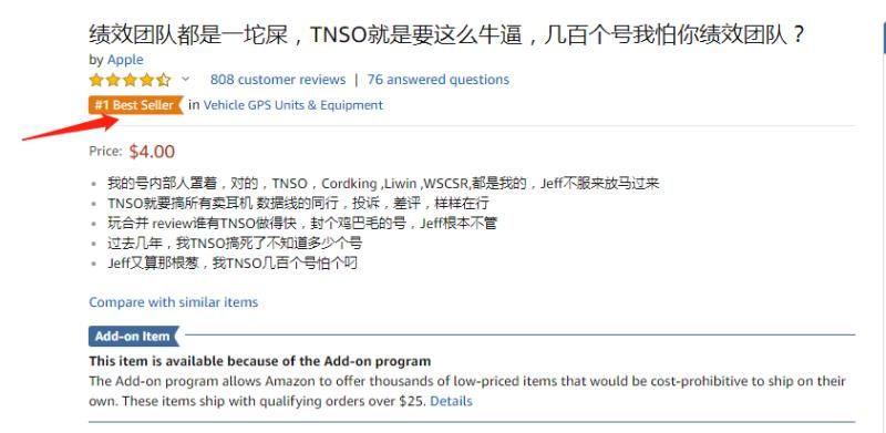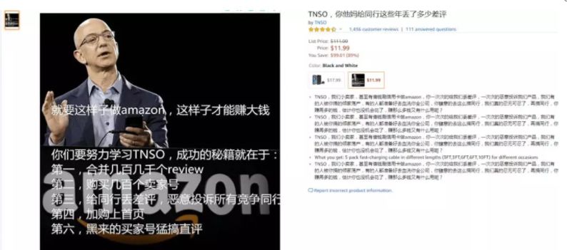 理性的看待,TNSO并不一定是本次肇事的卖家,有可能是其他卖家修改TNSO的商品链接,然后自称是TNSO,然后引诱其他卖家对TNSO进行攻击。截至发稿时,TNSO已经Currently Unavailable了。到底谁是始作俑者,谁是受害者呢?