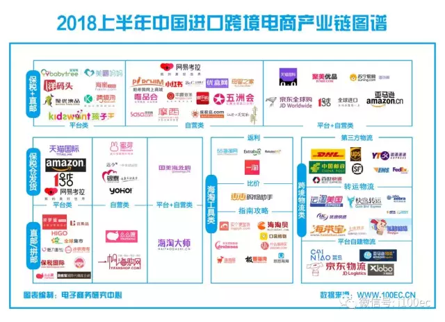 使用保税仓或直邮发货的平台+自营类电商:天猫国际、宝贝格子、苏宁海外购、聚美优品、京东全球购、亚马逊海外购、1号店全球进口、国美海外购、蜜芽、美囤妈妈等。