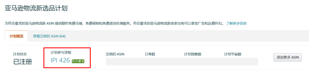 了解计划的参与资格、注册的ASIN、订单数等状态