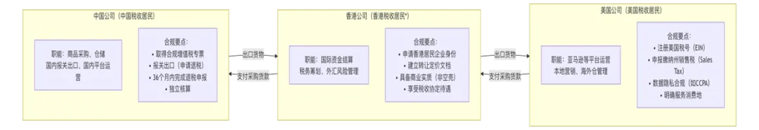 美国公司收取销售收入→香港公司统一管理资金→支付国内公司采购款