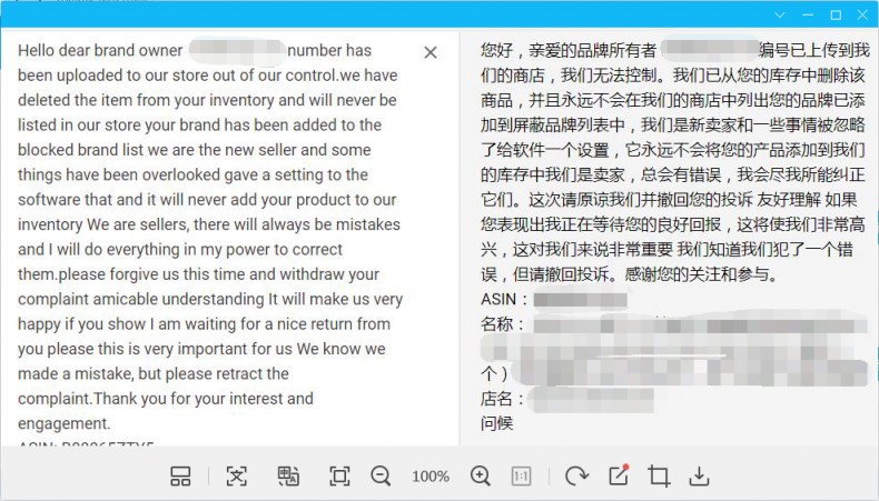 如此可恨的事就在近日发生了,一位卖家不幸被跟卖,经过一番投诉后跟卖前来承认错误: