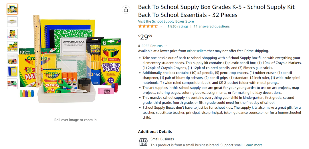 不过返校文具套装在今年的销量非常不错,下图这款有32件商品,可以一次买齐的文具套组,相比上个月销量上涨了680%。