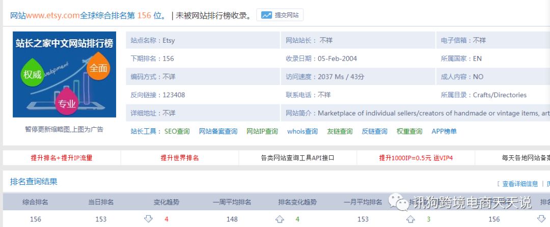 我们可以看到Etsy的全球排名非常让人吃惊(全球第156),