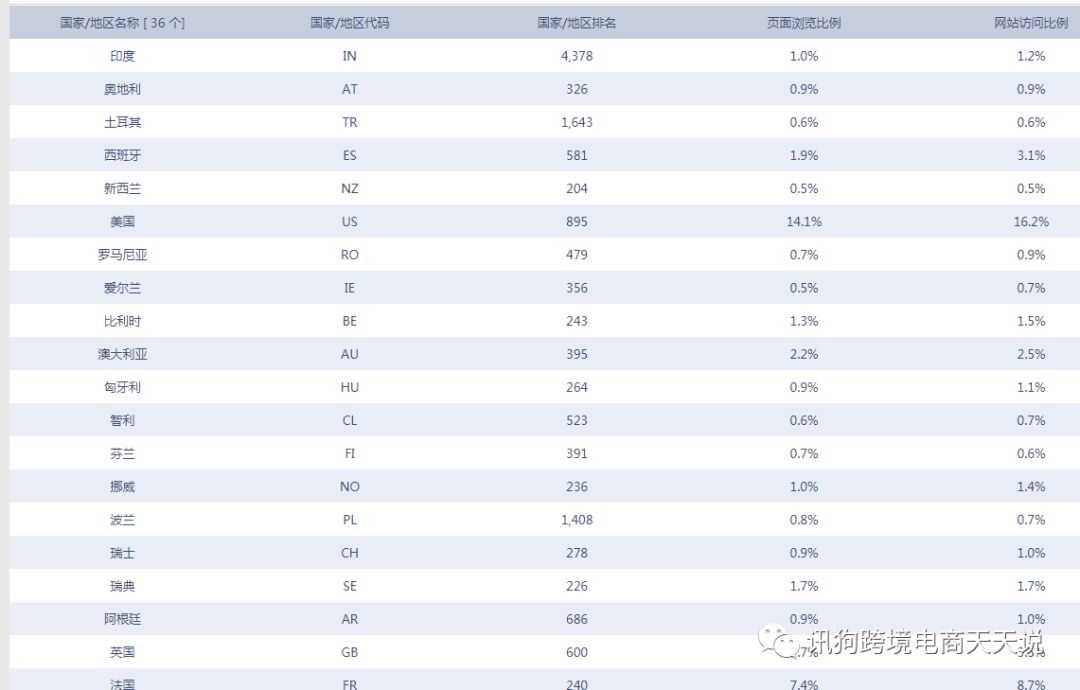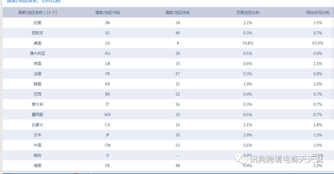 这些主要访问国家和我们平时收到的订单量分配区域也是很接近的。