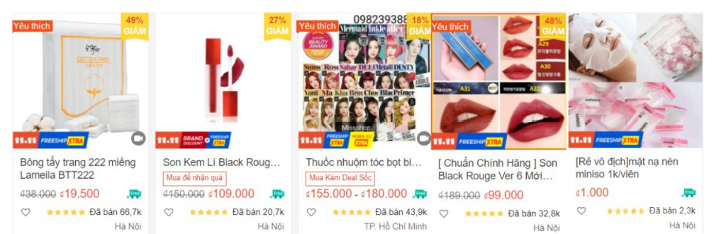 2. Health & Beauty美妆品类: hufuholic, rosiebeautie, lyncosmeticvn