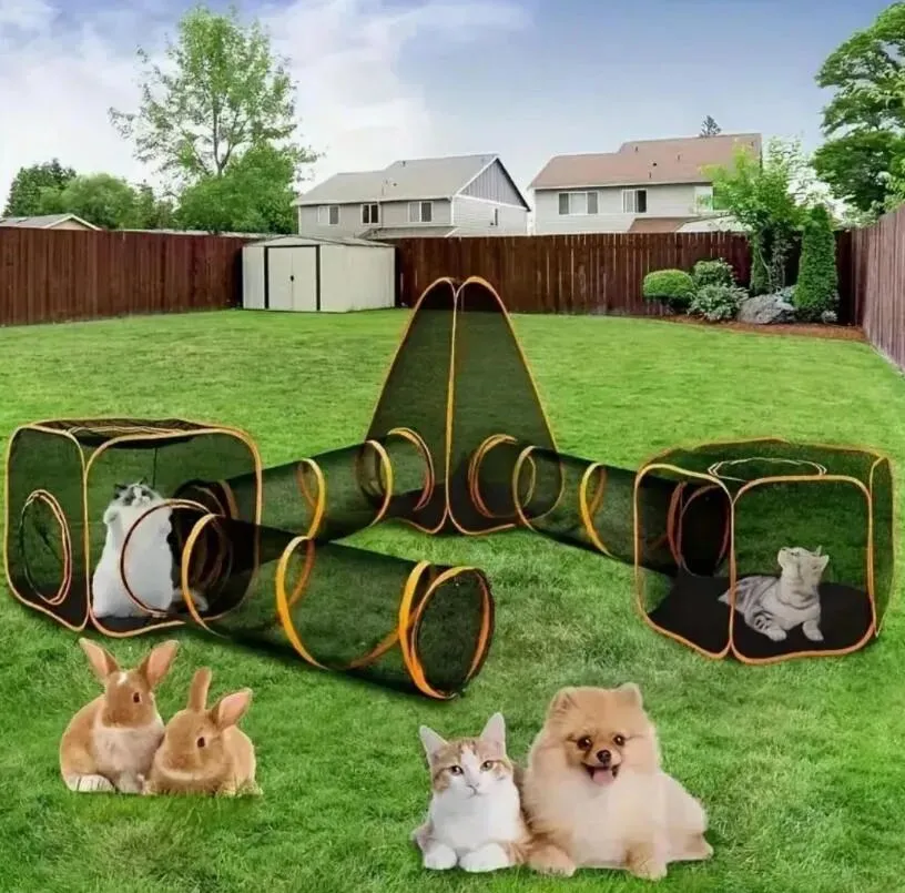 此外,帐篷配有双拉链门,方便宠物进出;附带的隧道可连接主帐,也能单独使用,为宠物提供更多探索空间。产品整体轻便可折叠,随附收纳袋,便于携带至庭院、阳台或户外露营。帐篷内部空间充裕,足以容纳玩具、零食甚至猫砂盆,兼顾实用性与舒适性。无论是居家使用还是户外探险,这款多功能围栏都能为宠物打造一个安全又自在的活动场地。