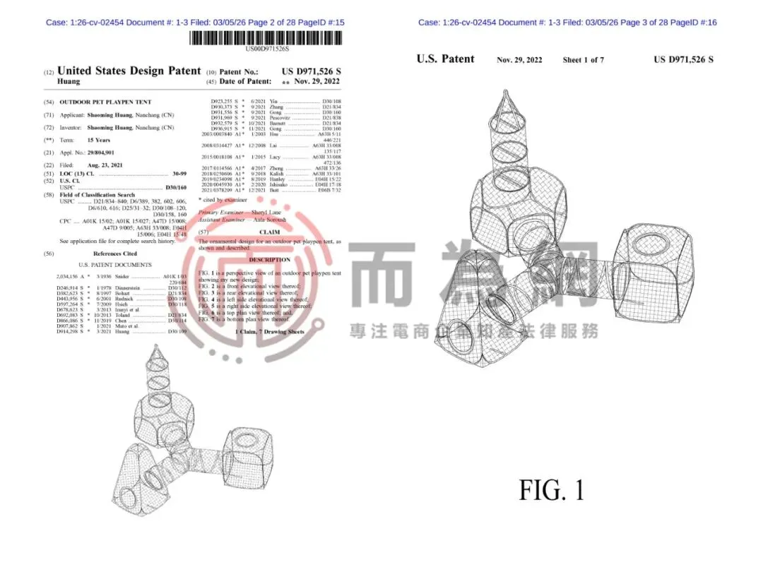 【侵权快讯】26-cv-2454 宠物用品卖家注意!三款宠物帐篷专利正在发案维权,速排查下架!