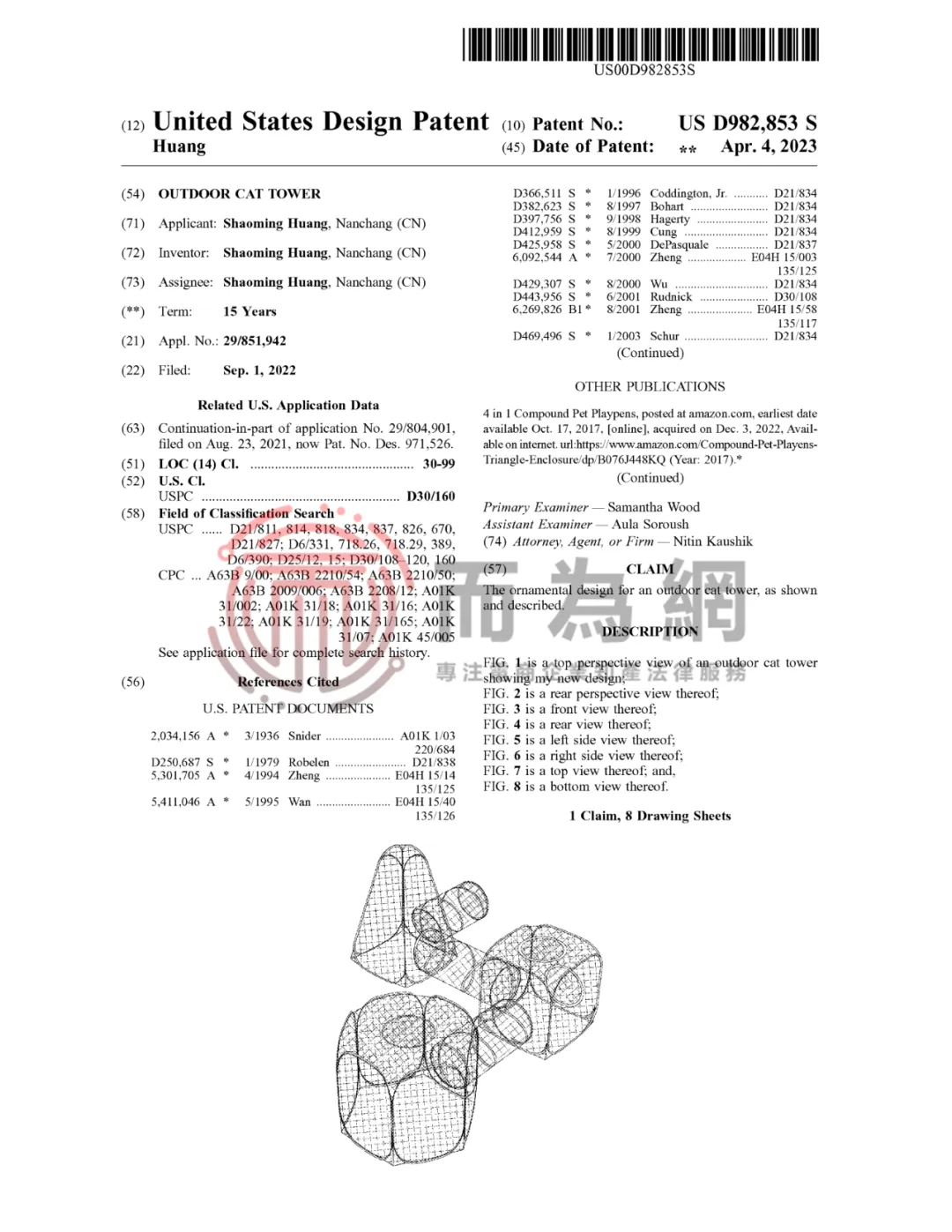 原告SHAOMING HUANG是一位国人卖家,本案是为其名下三项宠物攀爬帐篷专利发起维权。这款宠物帐篷专为追求户外乐趣的小型宠物设计,采用透气网眼与防水牛津布拼接而成,既保证空气流通,也让宠物能随时观察外界环境,减少分离焦虑。