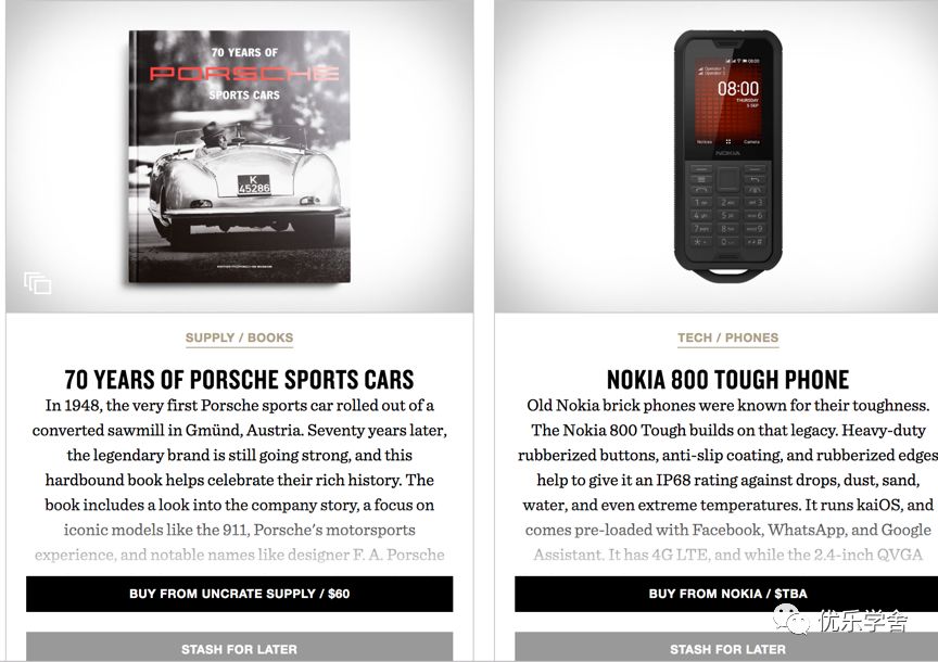 举个例子:如果你是卖男士时尚产品的,你可以在Uncrate,Cool Material和Snazzz等网站上找到一些灵感。