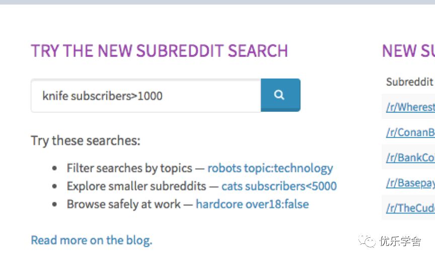 选择看起来很有前景的任何subreddits。单击/ r / subreddit链接将转到详细页面。