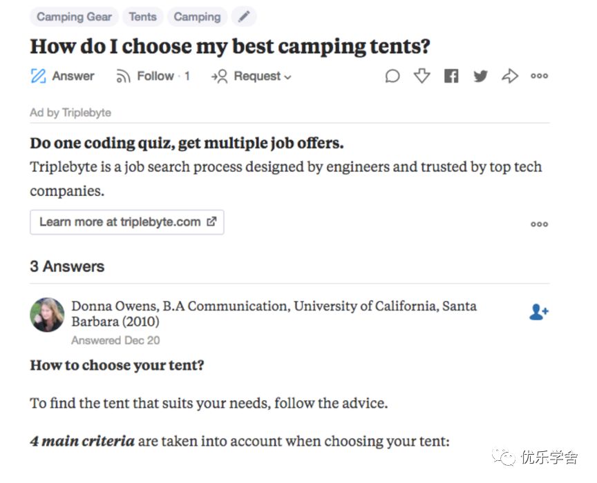 另一个有用的论坛网站是Quora。Quora允许用户询问特定细分领域的问题并从其他用户那里获得答案。