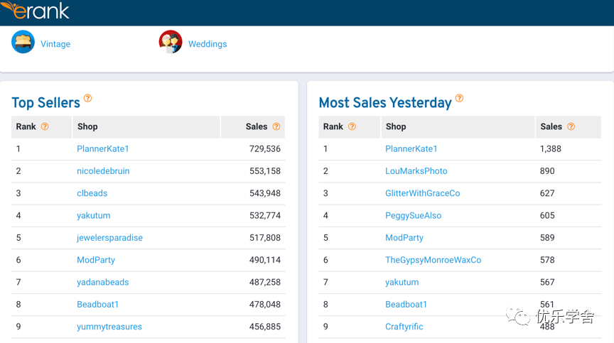 如果您销售手工制品,请看看Etsy上哪些卖得好。我推荐EtsyRank(EtsyRank’s top sellers list)的畅销排行榜。您将获得该类别中畅销榜的产品列表,点击一下即可找到总销售额。