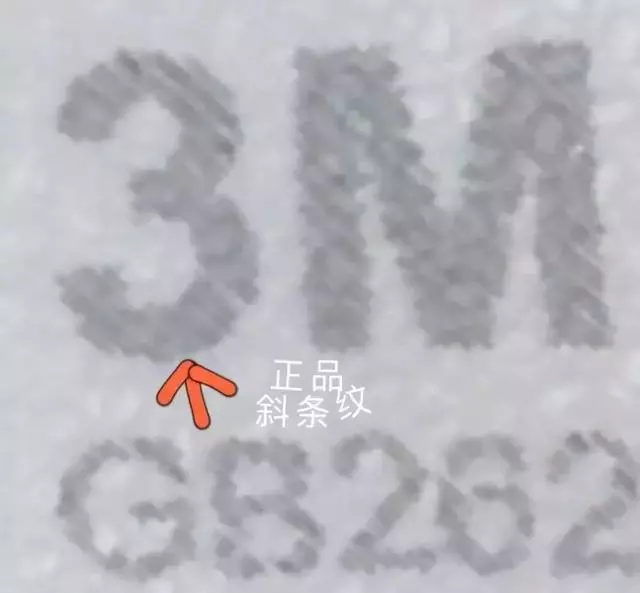 看印刷,3M口罩都是由激光打印的,打印痕迹呈45度斜角。