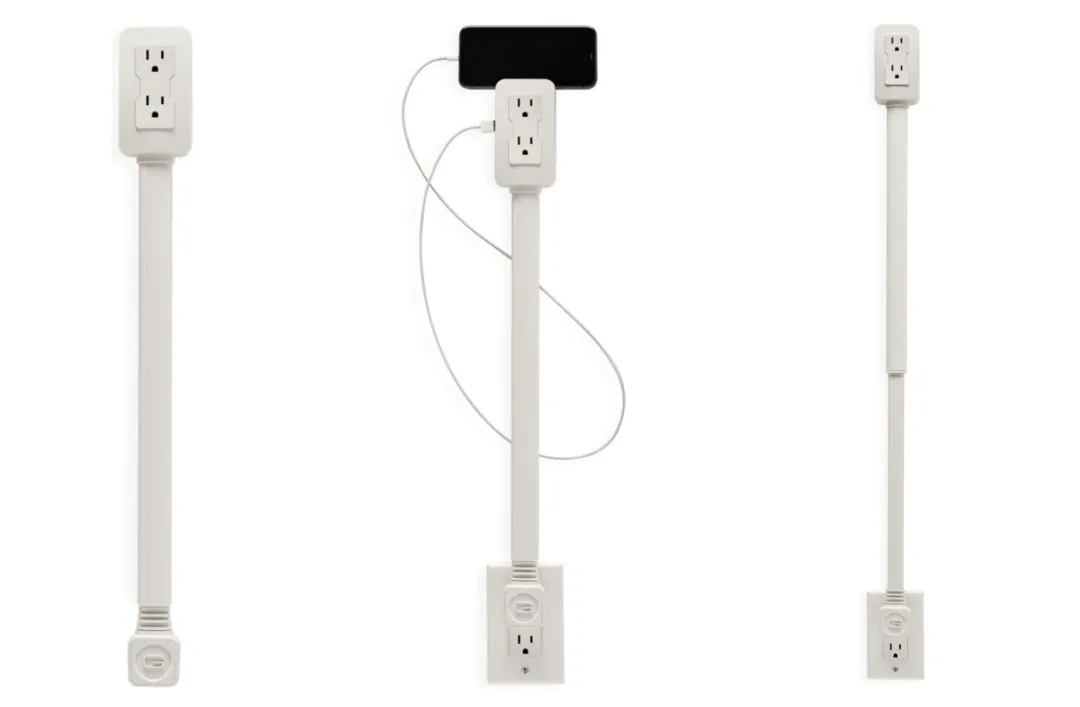插头端设计成可选择性地插入墙壁插座;插座端配置成可选择性地接收一个或多个插头;可伸缩轴位于插头端和出口端之间,其中插头端可旋转;