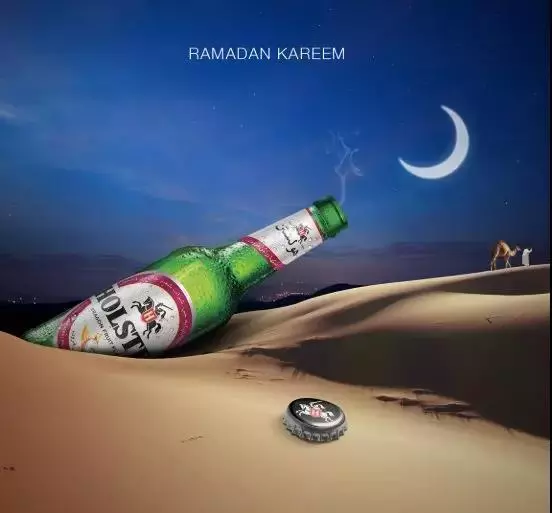 斋月的开始和结束就是以新月牙的出现为准,伊斯兰教长在清真寺的宣礼楼上遥望天空,如果看到了纤细的新月,斋月即开始。因此,新月是斋月广告中最常见的素材。