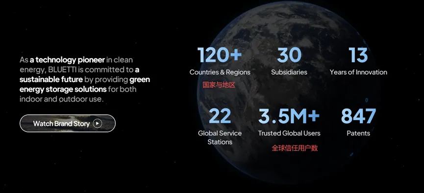 2020年,公司正式推出自主品牌BLUETTI铂陆帝,产品线涵盖露营轻便型储能电源、家庭应急储能电源,全面启动全球化品牌战略。