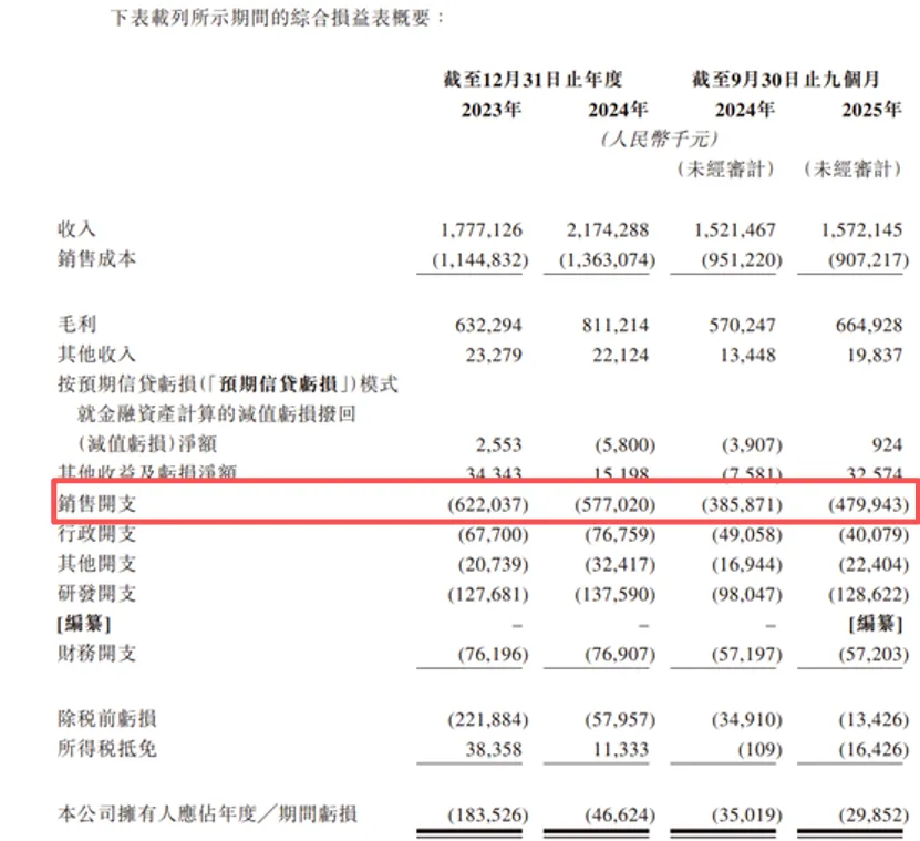 招股书显示,2023年至2025年前三季度,公司累计净亏损约2.6亿元,而亏损的核心原因并非高研发投入,而是“烧钱式”的品牌推广;