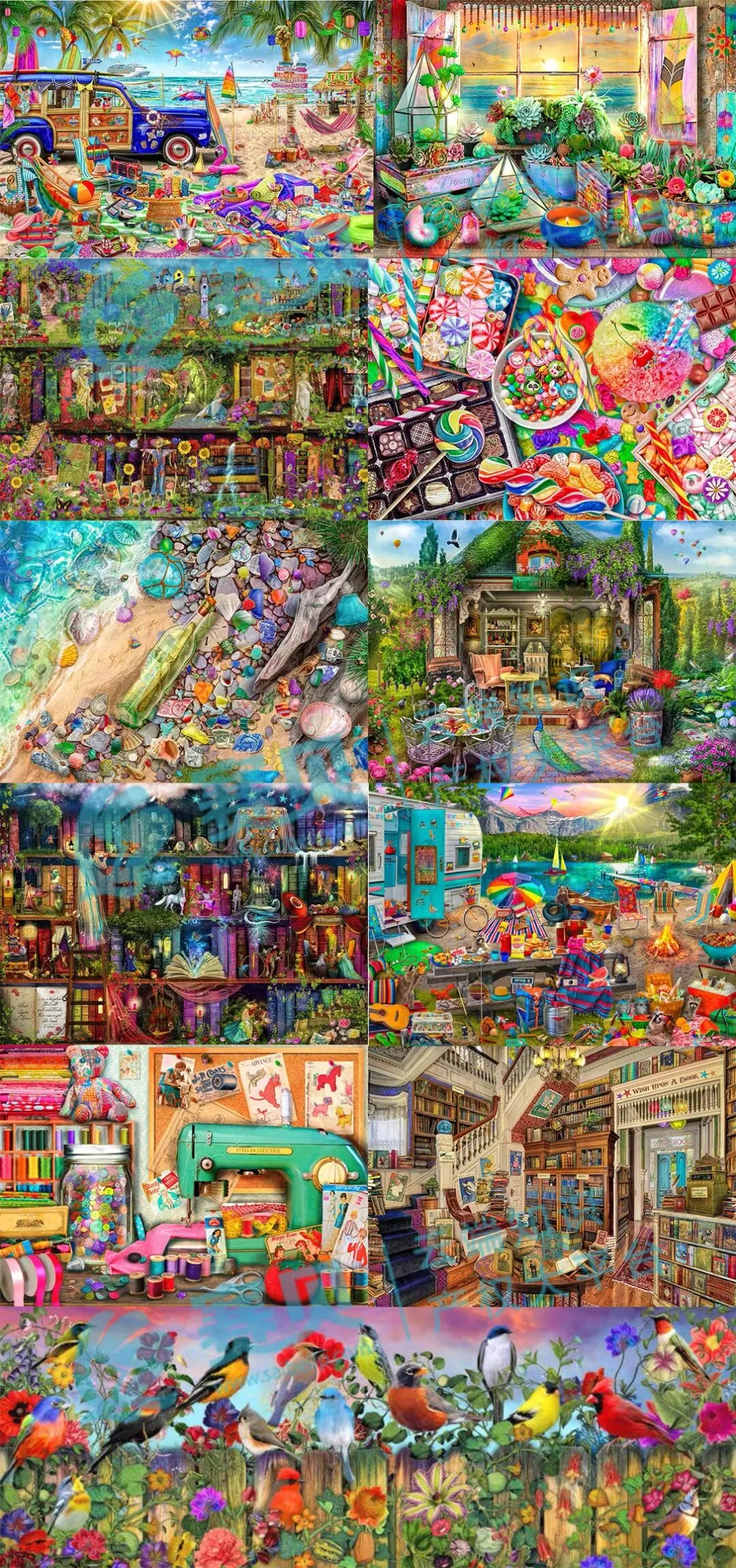 这次TRO案件涉及 11 项美国注册版权,这些艺术作品风格融合了数字绘画、照片处理和3D建模合成技术,以奇幻主题和丰富细节出名,画面色彩绚丽、元素繁杂还充满梦幻感,经常通过大量小物件、场景的堆叠营造出沉浸式的奇幻世界,多用于拼图、家居装饰等授权产品领域。赛贝在这提醒跨境卖家,没经过授权可别擅自使用,不然很容易引发侵权风险。
