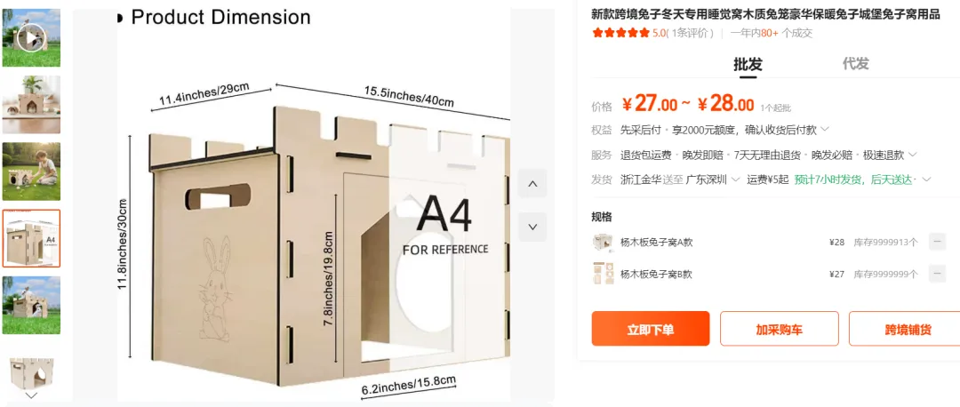 图片中的产品是一款兔子的小房子,产品材质是木制的胶合板,经过激光切割造型,拼接结构,组合而成,产品的作用呢,也很简单,是兔子的小房子,兔子的藏身之处,产品结构简单易组装,易发货。