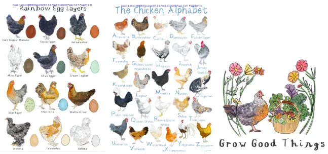 113家跨境店铺被告,涉及以下3张母鸡版权插画: