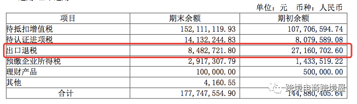 作为一个采购量和出口量都非常大的企业,通拓充分利用了出口退税的政策。在上半年开始,出口退税余额约2700万元,期末余额也有约850万元。