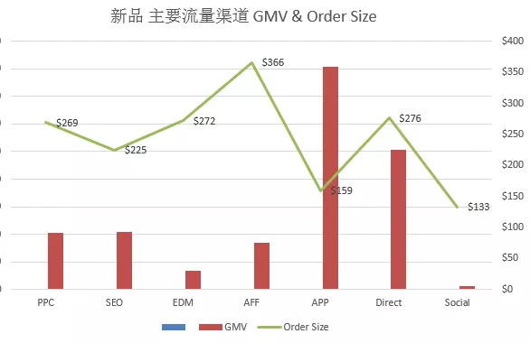 APP和站内直接流量新品GMV最高,AFF(联盟)客单价最高