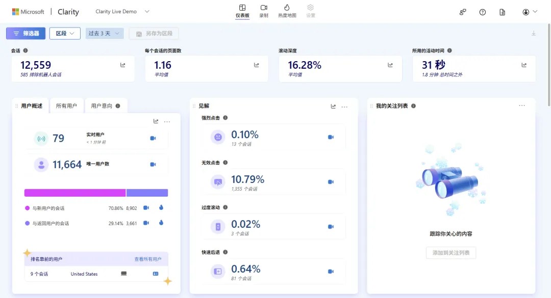 以上便是网站用户行为分析工具 Microsoft Clarity 安装使用介绍。