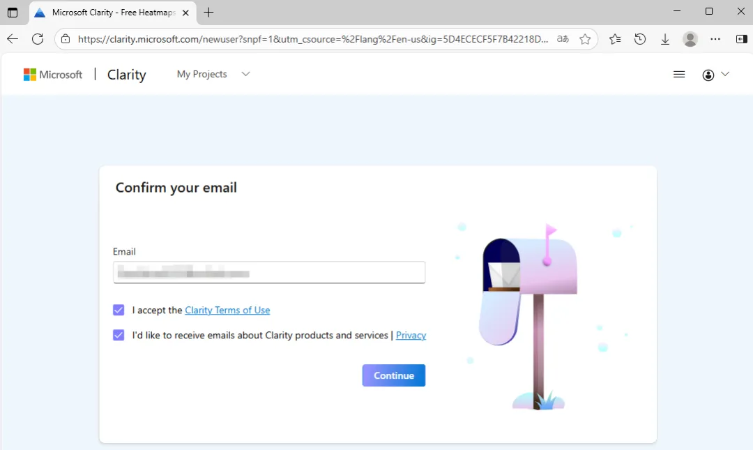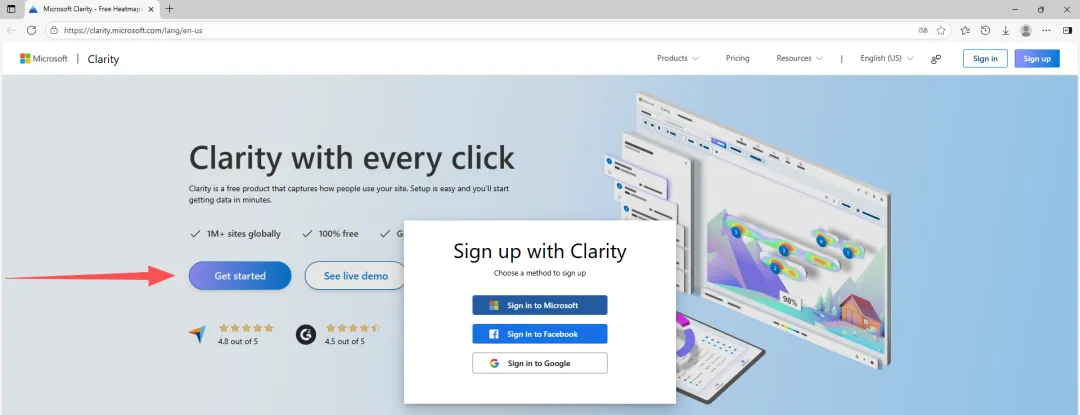要开始使用 Clarity,需要先注册账户,