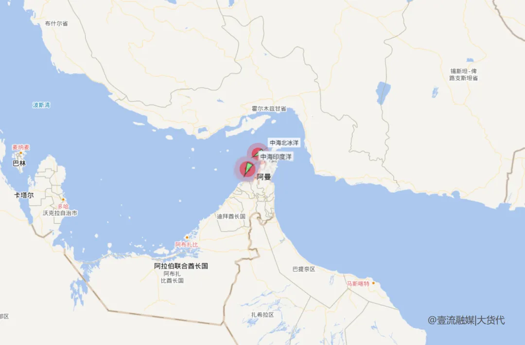 并且船舶AIS数据也显示,不实报道中提及的‘中海印度洋’号和‘中海北冰洋’号目前也仍停留在湾内,是向波斯湾方向折返,并未通过霍尔木兹海峡。