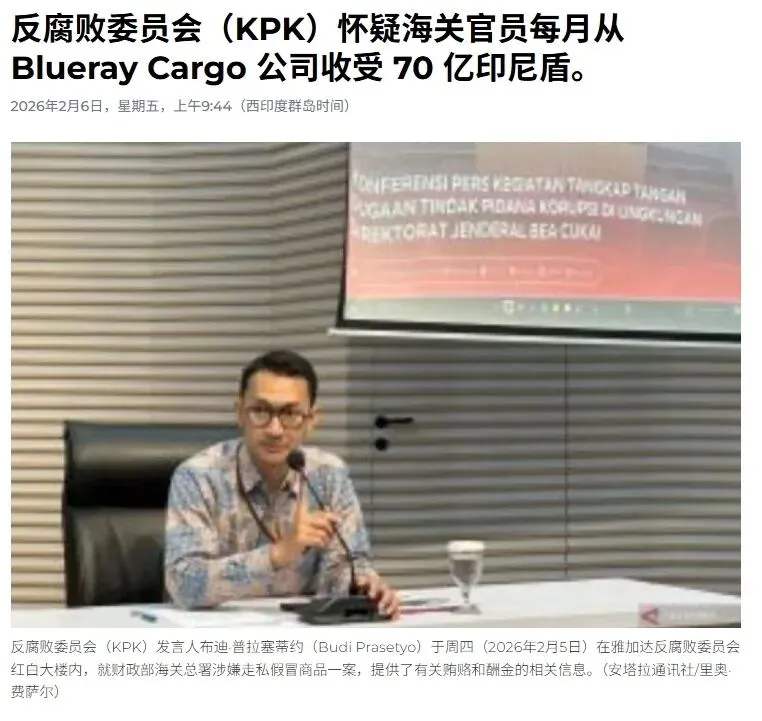 今年2月4日,印尼反腐败委员会(KPK)在雅加达和楠榜同时收网,17名海关员工被诱捕。