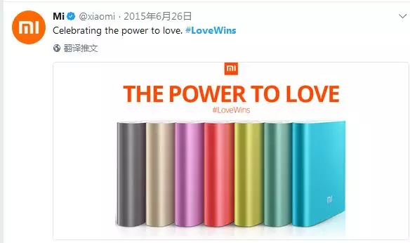 2015年,美国最高法院裁定同性恋婚姻合法化当天,#lovewins(真爱永不败)这个话题标签立马成为 Twitter热门,引发全球热议。全美各大品牌,包括中国许多企业都纷纷标注转发,引发了上万网友的热评和转发。