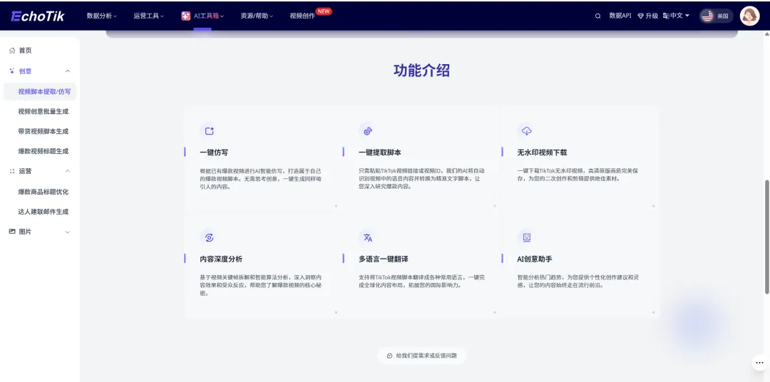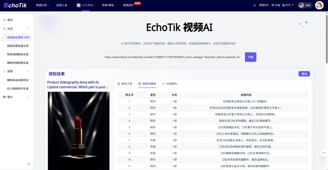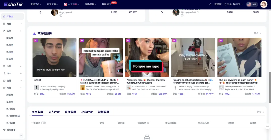 EchoTik 的价值,并不是“给你素材”,而是帮你回答一个更重要的问题: