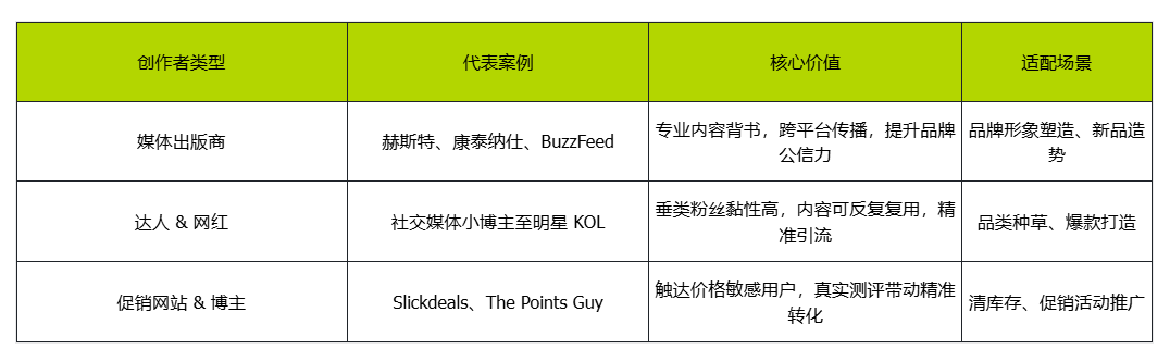 不同类型的创作者适配不同推广需求,品牌可根据目标灵活匹配: