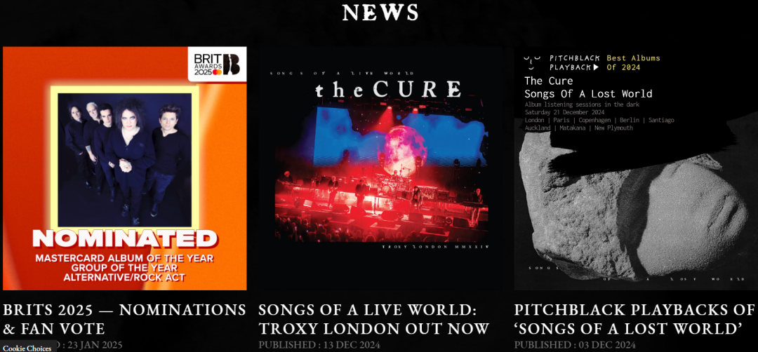 The Cure 是一支来自英国的摇滚乐队,成立于 1976 年,由主唱兼吉他手 罗伯特·史密斯(Robert Smith) 领衔。乐队以其独特的 哥特摇滚风格 和深邃的音乐作品闻名,影响了无数乐迷和后来的音乐人。《Just Like Heaven》《Lovesong》《Friday I’m in Love》等经典歌曲,让他们在全球范围内拥有大批忠实听众。