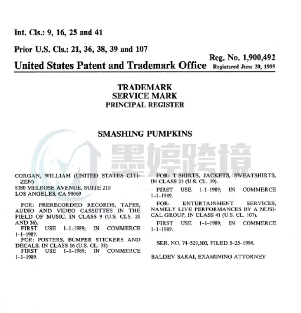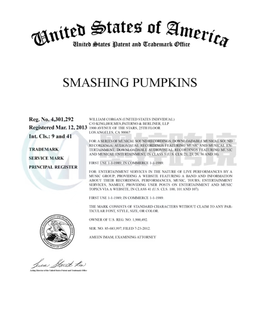 本案为商标侵权,原告旗下注册图文商标众多,维权关键词: Smashing Pumpkins;