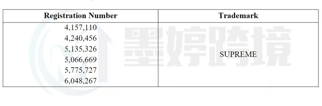 本案为商标侵权,原告旗下注册图文商标众多,维权关键词:Supreme;注意:未经授权不能随意使用,侵权风险极大!