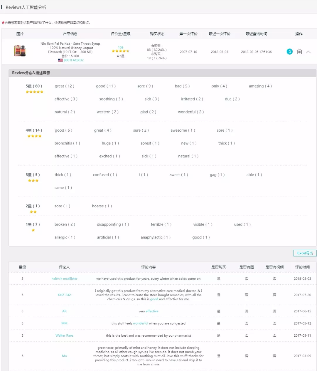 通过对亚马逊上现有的“京都念慈菴蜜炼川贝枇杷膏”产品reviews进行分析,我们可以得知买家眼中的枇杷膏是这样的: